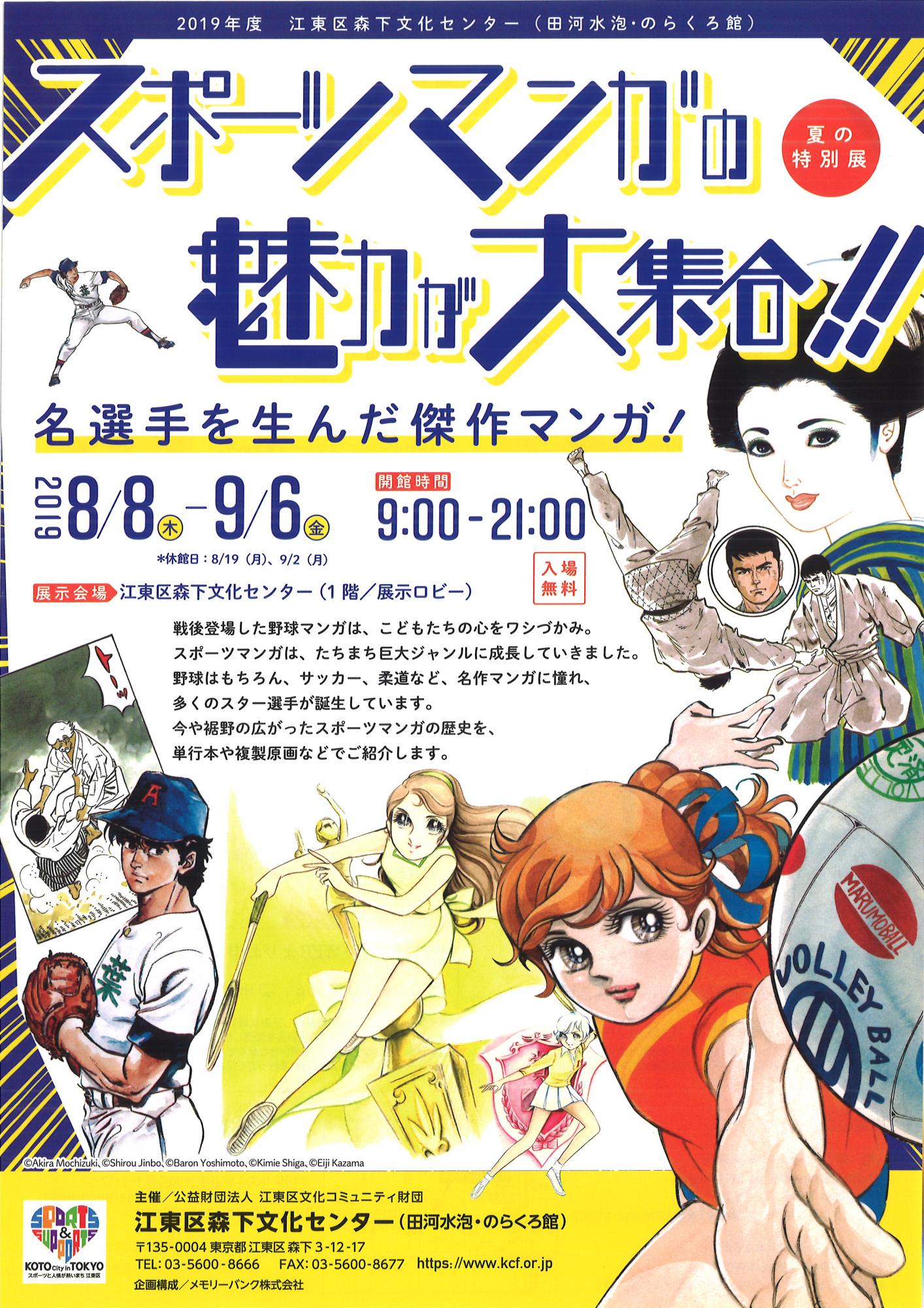 戦後登場した野球マンガは、こどもたちの心をワシづかみ。スポーツマンガは、たちまち巨大ジャンルに成長していきました。野球はもちろん、サッカー、柔道など、名作マンガに憧れ、多くのスター選手が誕生しています。今や裾野の広がったスポーツマンガの歴史を、単行本や複製原画などで紹介します。